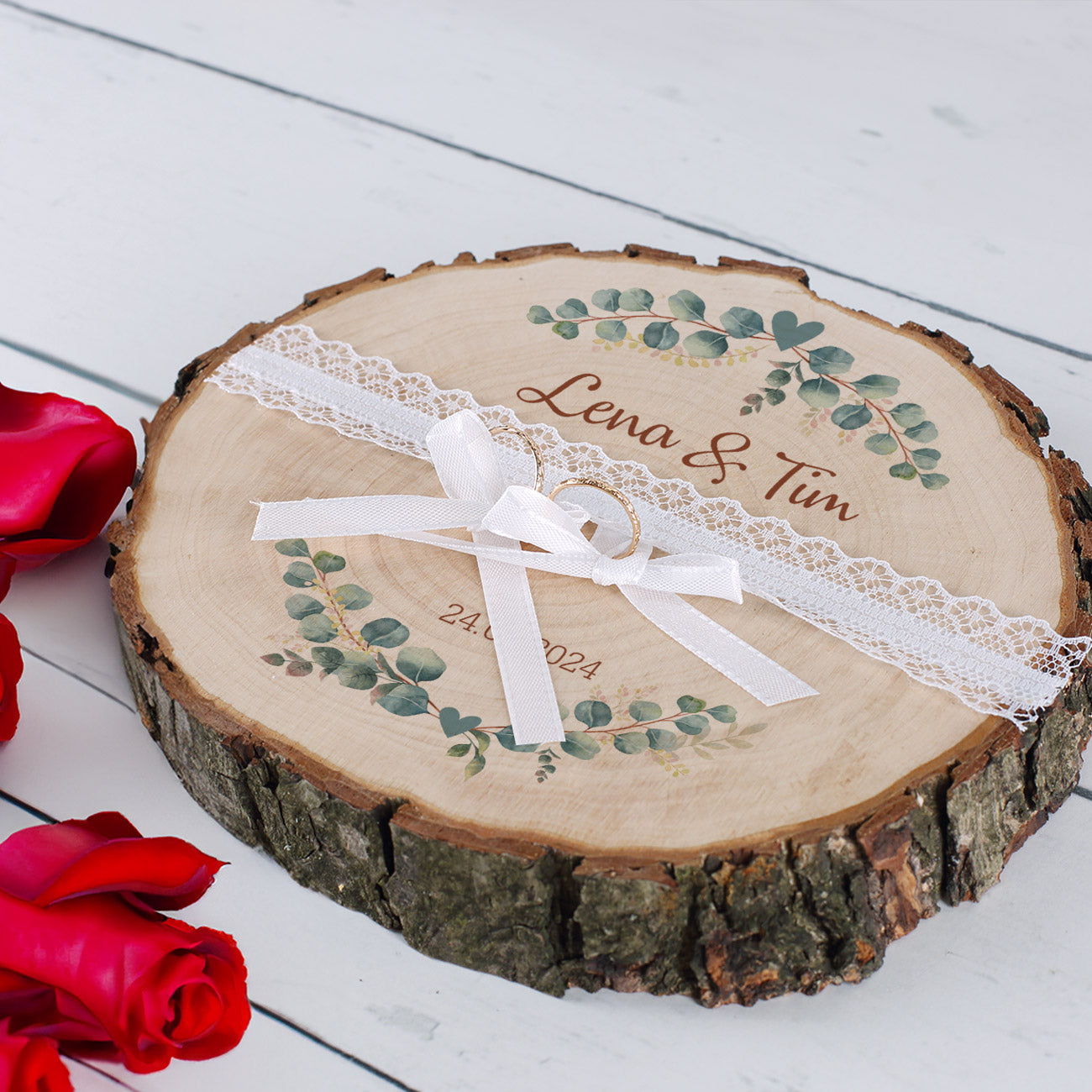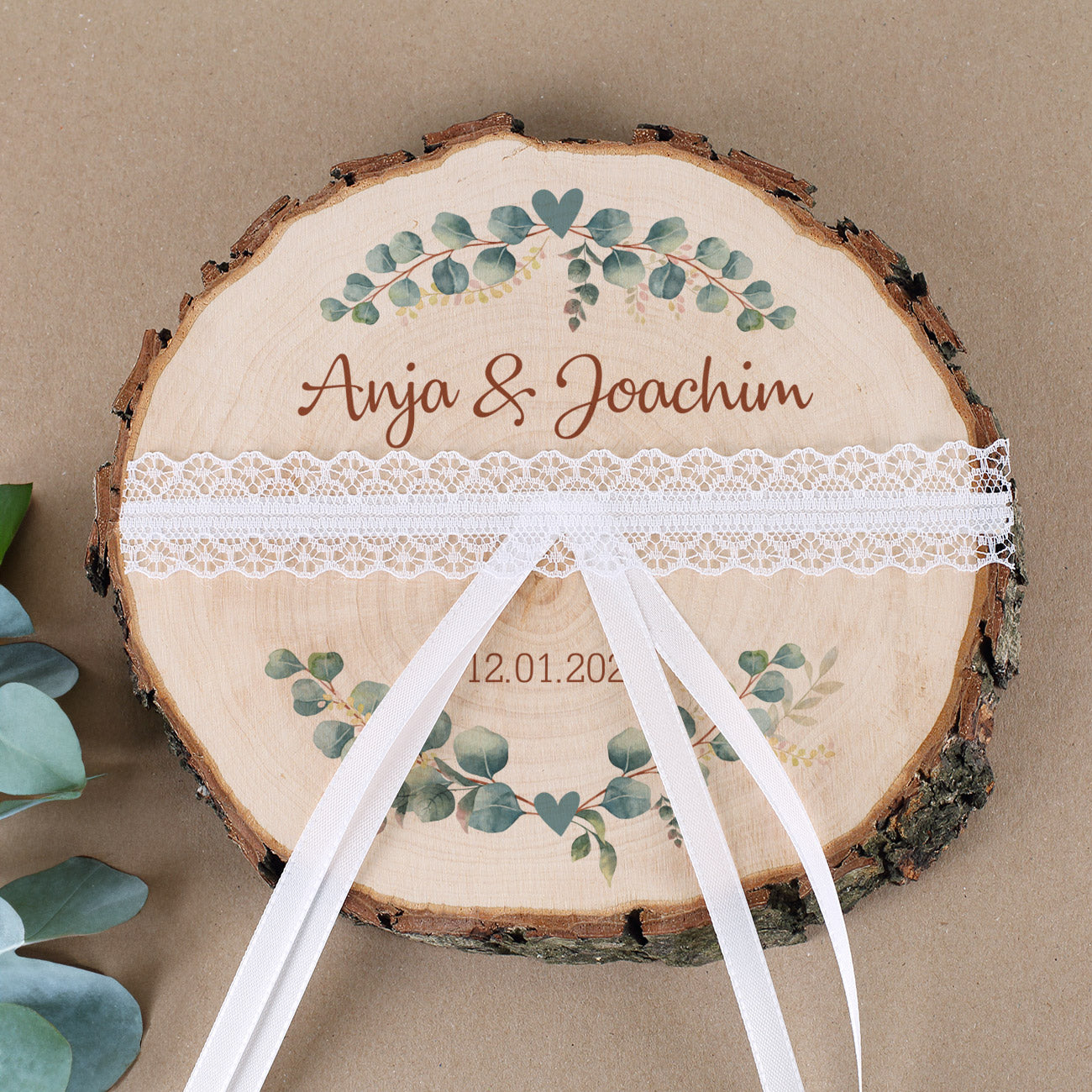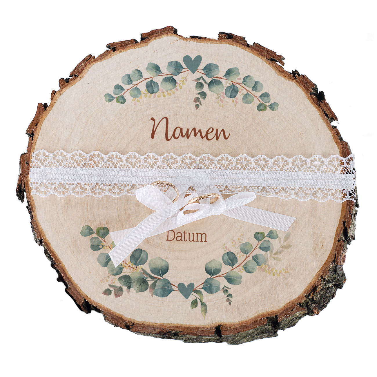 Baumscheibe als Ringkissen Eukalyptus Motiv