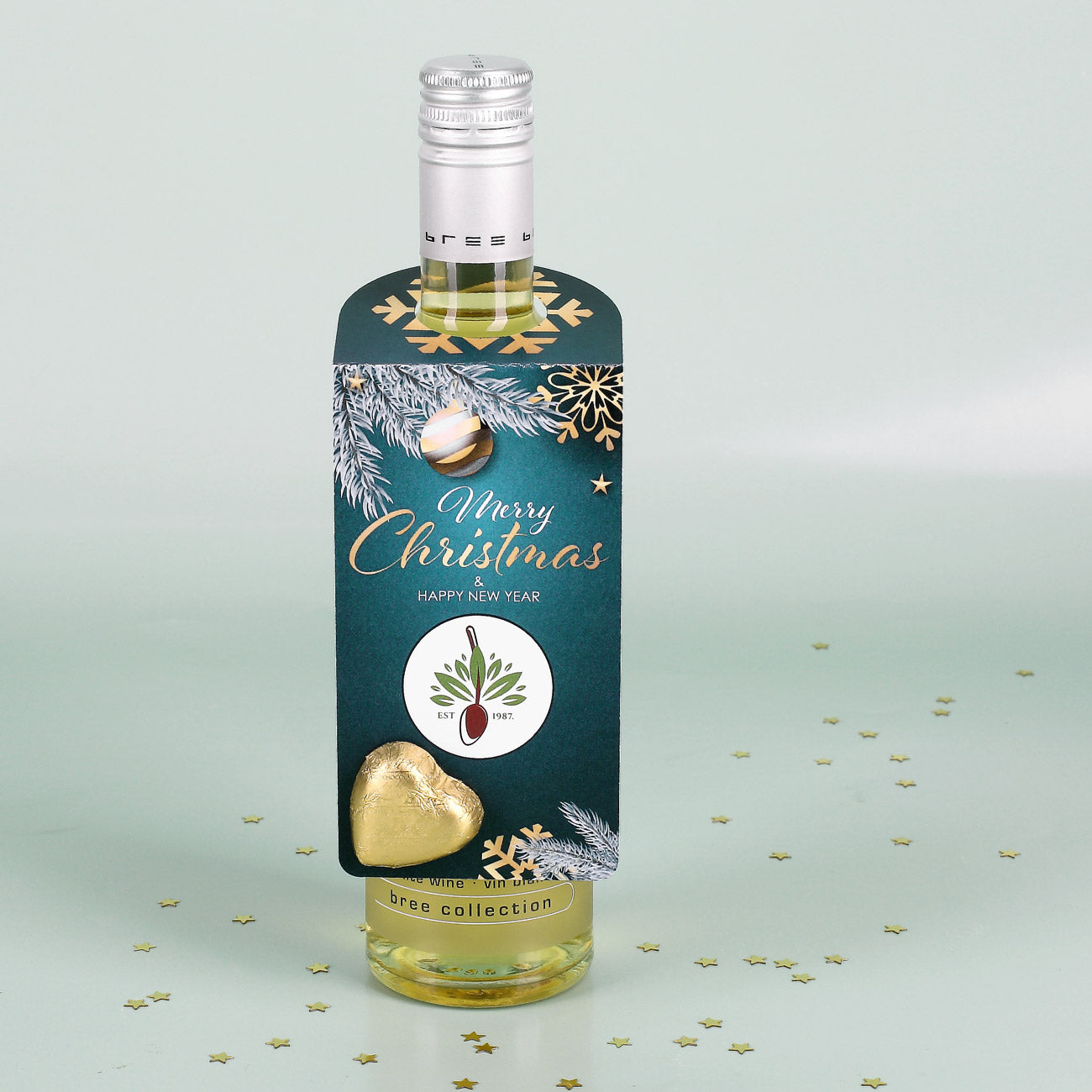 Der bedruckte Flaschenanhänger wird mit einem weihnachtlichen Motiv versehen. Das Besondere an diesem Anhänger ist nicht nur Ihr Firmenlogo, welches in die Mitte platziert wird, bestückt wird der Anhänger mit einem Schokoherz von Lindt.