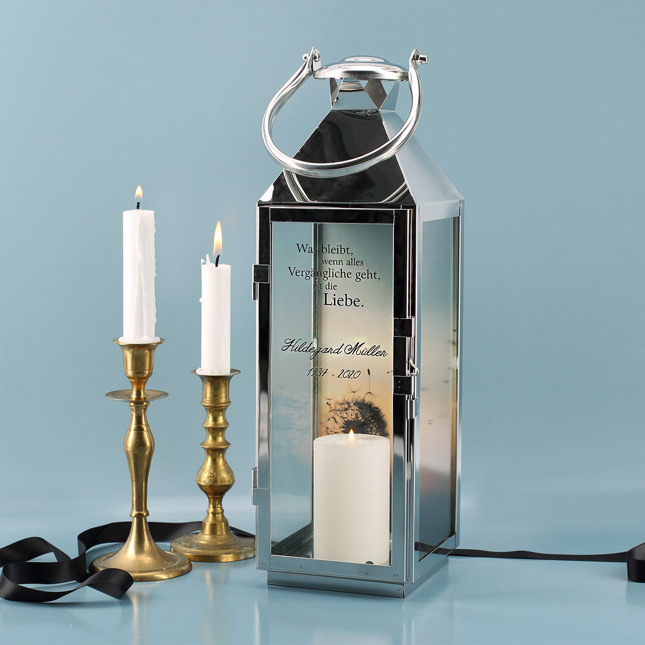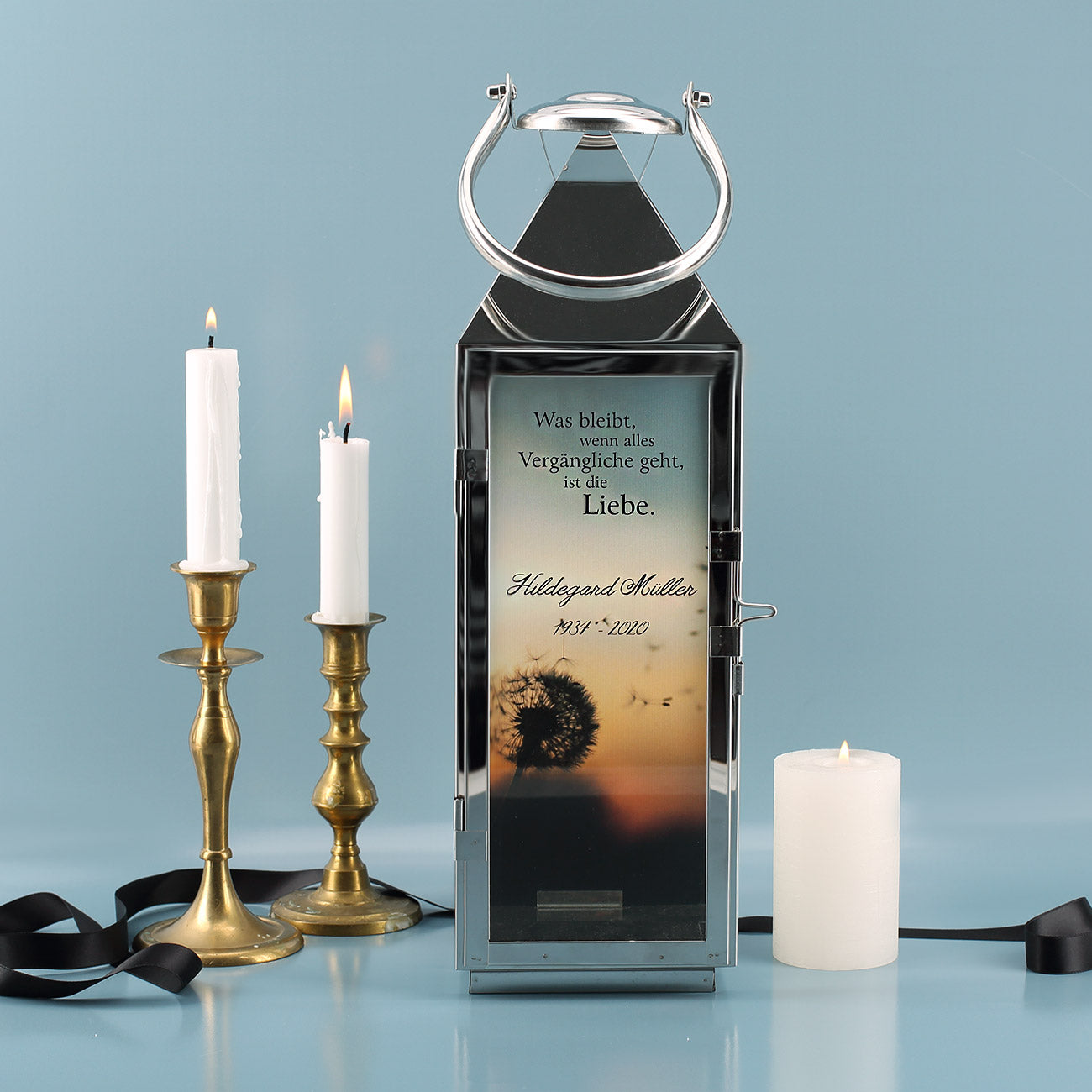 Gedenk Laterne mit Namen des Verstorbenen – Was bleibt ist die Liebe