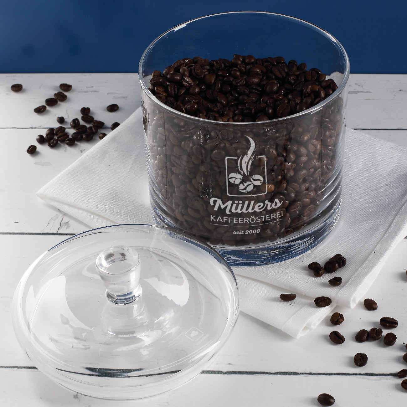 Dekorativ ist diese Glasdose von Leonardo ein richtiger Hingucker. Besonders gut zum Vorscheinen kommt die hochwertige Lasergravur. Ihr Firmenlogo oder Ihre Werbebotschaft gravieren wir auf die Aufbewahrungsdose. Durch den luftdichten Deckel bleiben Lebensmittel wie Kaffee und Kekse lange frisch.