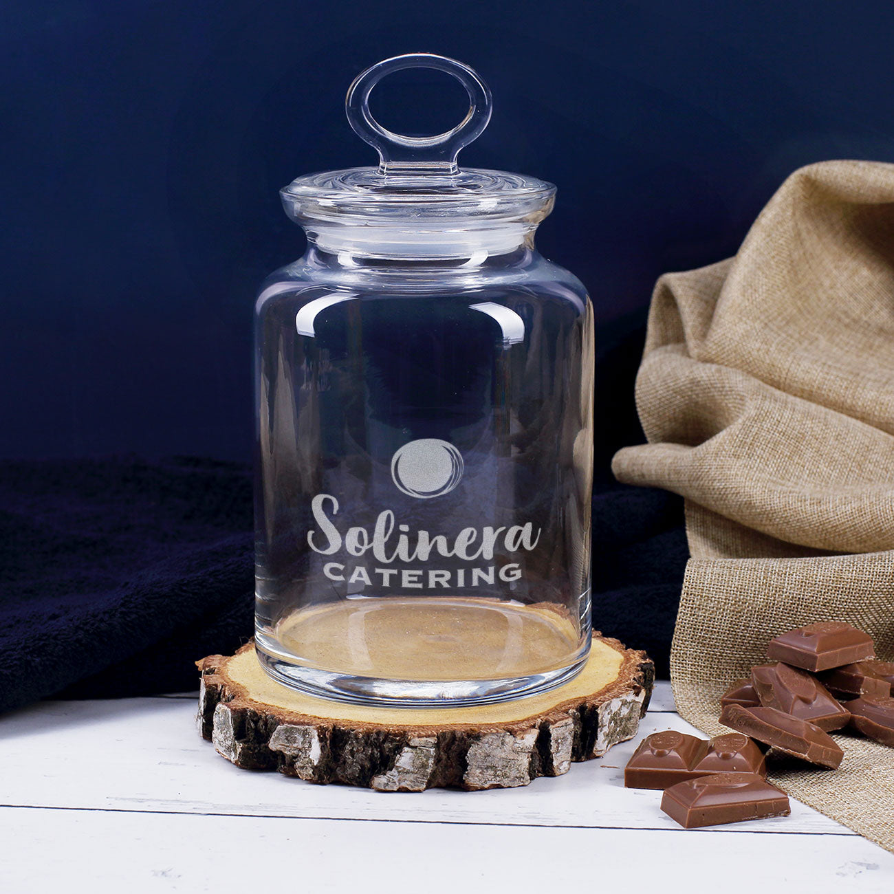 Ob für den Tresen in Ihrem Café, in Ihrem Laden oder in Ihrem Empfangsbereich - diese Glasdose mit individueller Gravur, ist ein echter Hingucker. Die Glasdose kann mit Kekse sowie Bonbons gefüllt oder einfach als Dekoration benutzt werden.