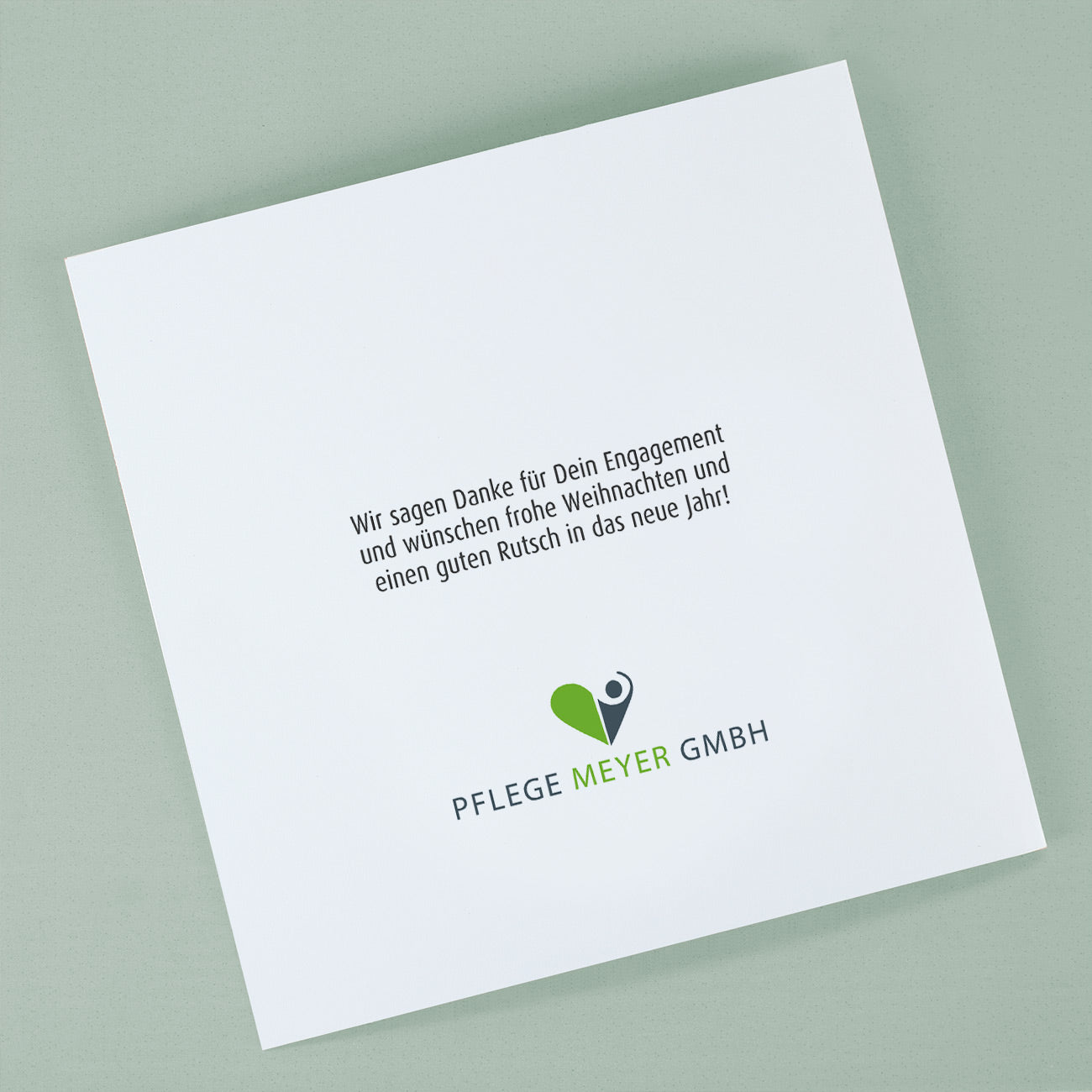 Personalisierung und Einsatzmöglichkeiten: Diese Karte kann mit Ihrem Firmenlogo und einem persönlichen Weihnachtsgruß individuell bedruckt werden. Ideal, um Geschäftspartnern und Kunden zu Weihnachten eine besondere Freude zu bereiten und gleichzeitig die Markenbindung zu stärken. Perfekt als Weihnachtsgruß oder als Beilage zu Weihnachtsgeschenken.