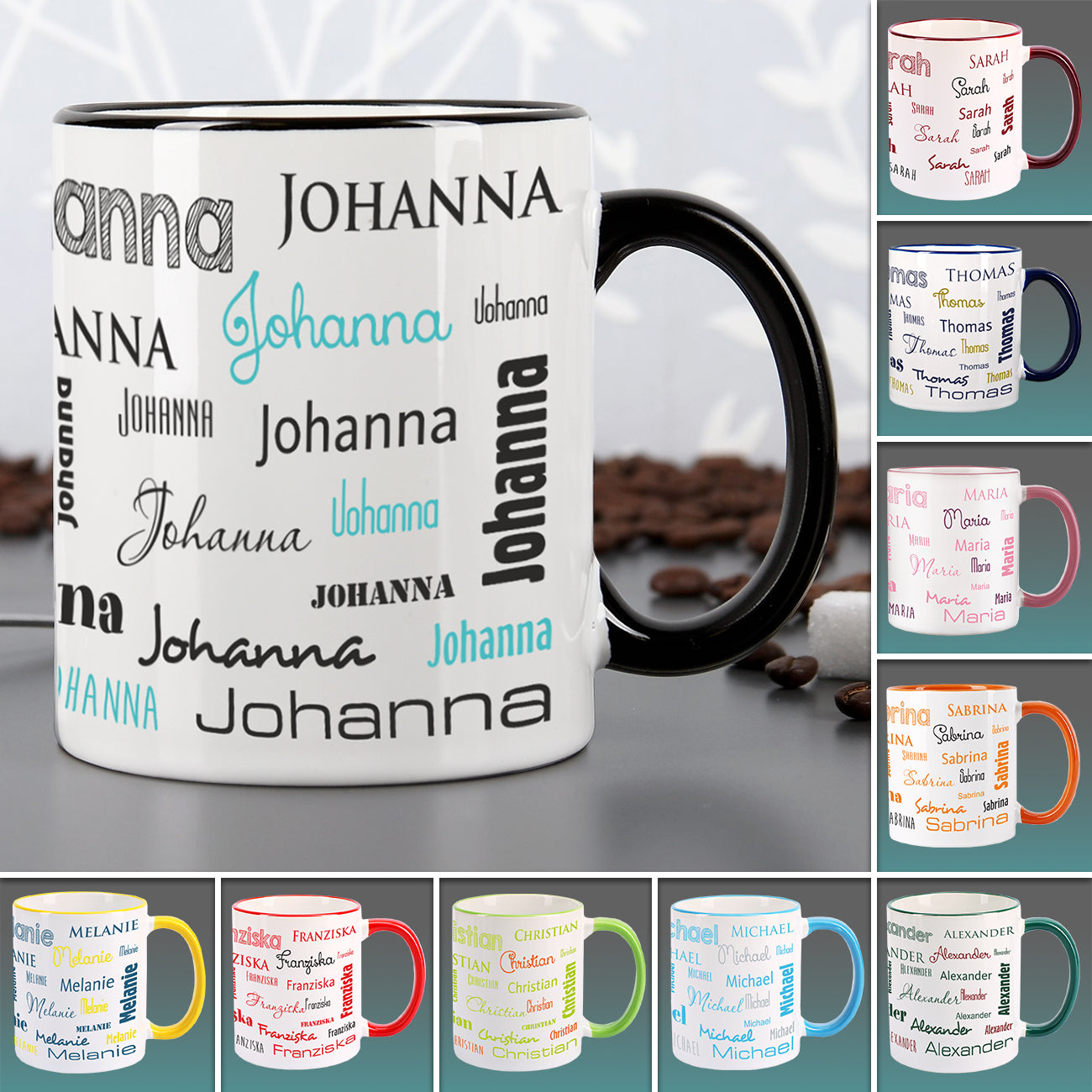 Ein besonders großer Vorteil dieser bedruckten Tasse ist, dass es in der Büro Küche weniger Verwechslungsgefahr gibt. Jeder Mitarbeiter hat seine eigene Tasse mit seinem Namen. Die personalisierte Tasse gibt es in zehn verschiedene Farben: dunkelblau, hellblau, rot, dunkelrot, hellgrün, dunkelgrün, rosa, gelb, orange und schwarz. Die Keramiktasse hat eine Höhe von 9,5 cm und ein Fassungsvermögen von rund 300 ml.