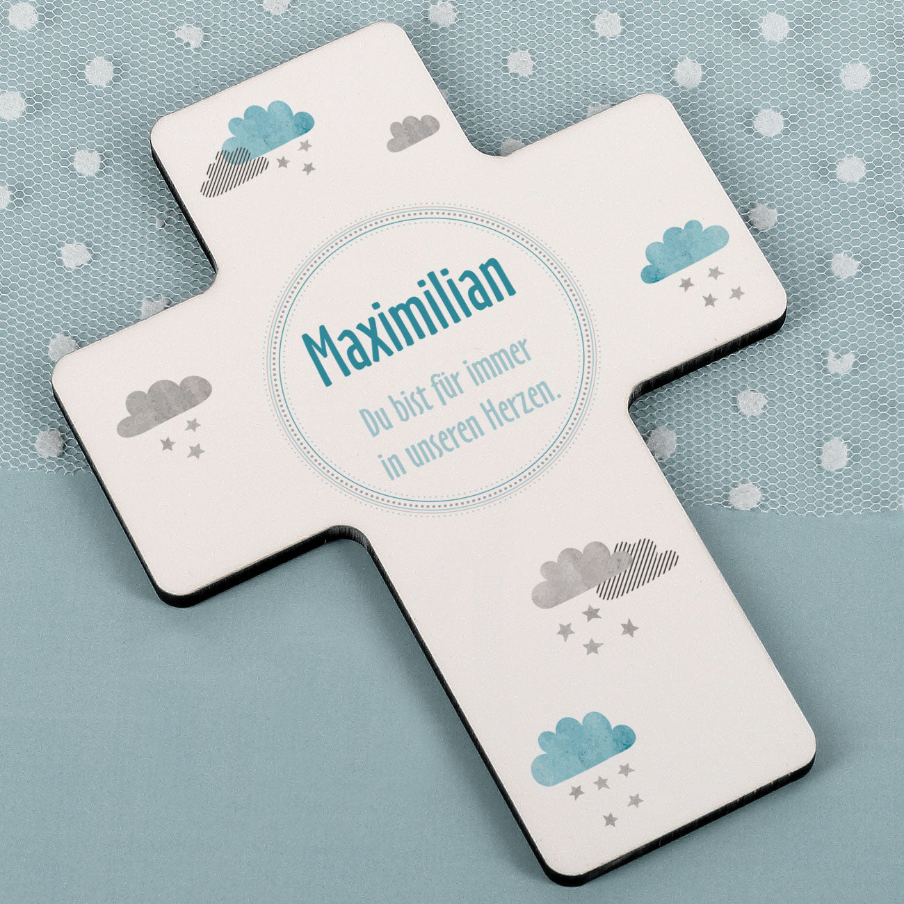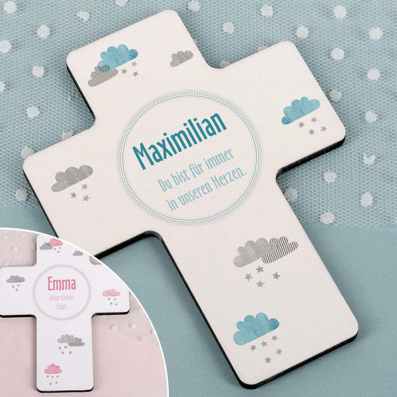 Personalisiertes Gedenkkreuz für Sternenkinder in blau oder rosa