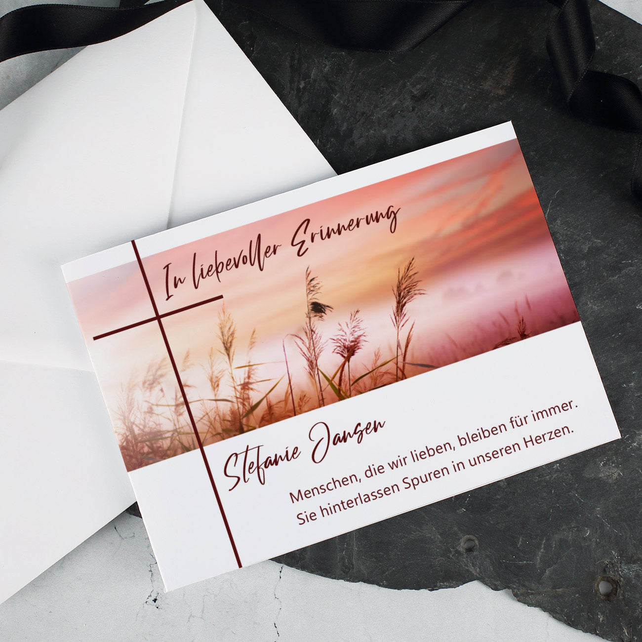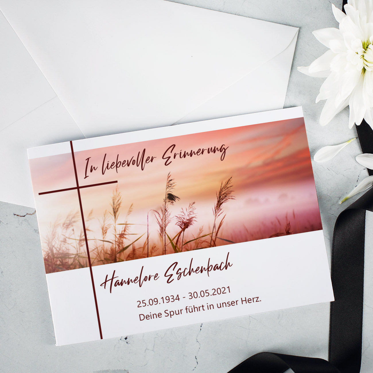 - Vielseitige Nutzung: Ideal für Trauerfeiern, Beileidsbekundungen oder als bleibende Erinnerungskarte.