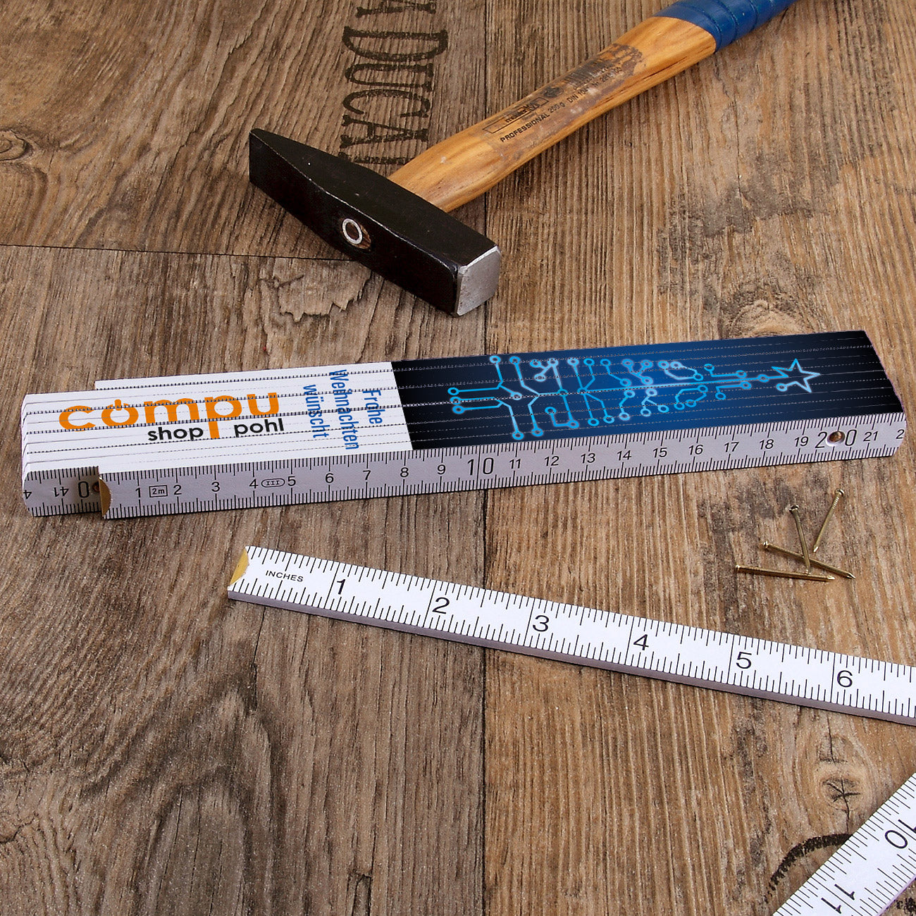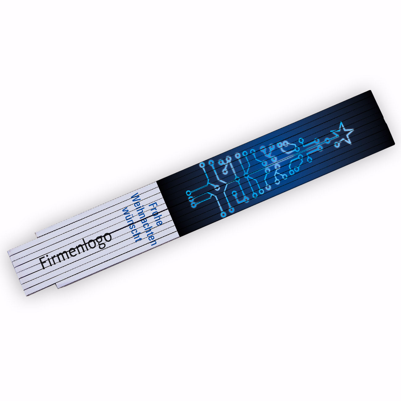 Weihnachtsbaum in Leiterplatten-Optik auf Zollstock mit Ihrem Firmenlogo